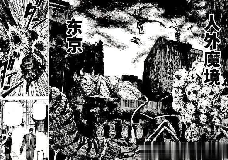 由于死灭洄游的原因,京东已经成为一片废墟,被结界覆盖,人类无法居住,被称为人外魔境。