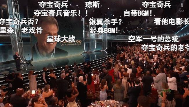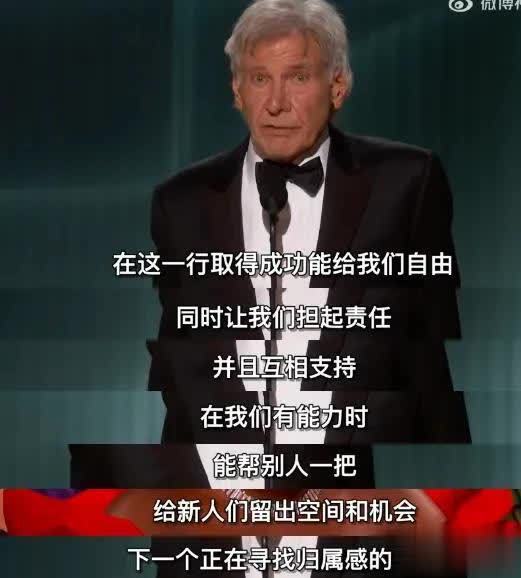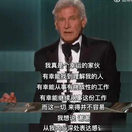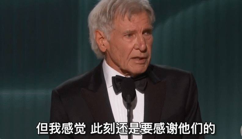 连台下见多识广的大咖们,也都被哈里森·福特的诚挚所震动,个个神情严肃,眼睛里透着尊重。